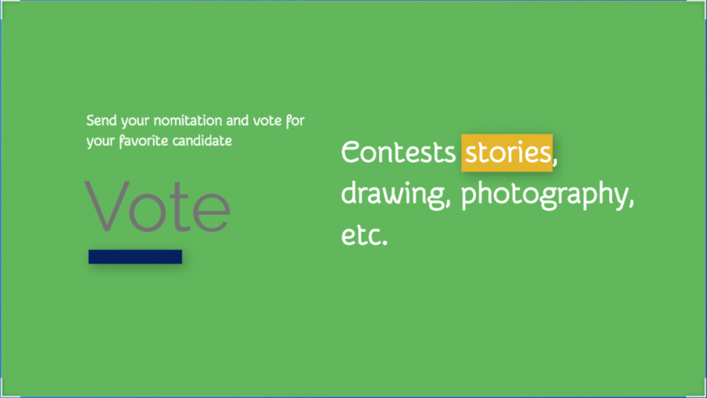 También podrás crear concursos literarios (relatos cortos), de dibujo o de fotografía. Envía tu candidatura a través de la encuesta para que los usuarios voten al mejor candidato.